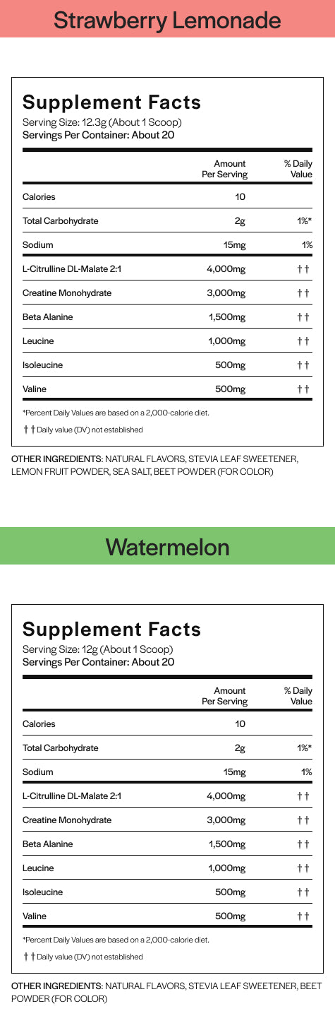 L-Citrulline and Beta-Alanine team up to delay fatigue and boost endurance. Optional caffeine & L-Theanine provides focus, mental clarity, and sustained energy, without the crash.